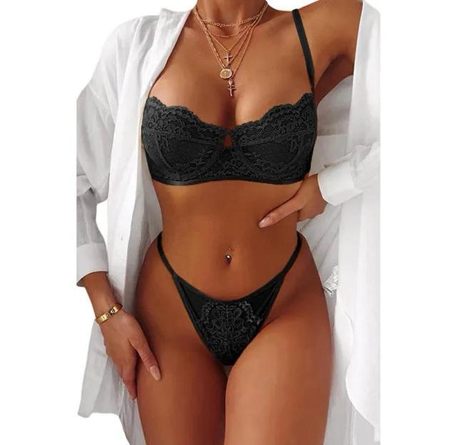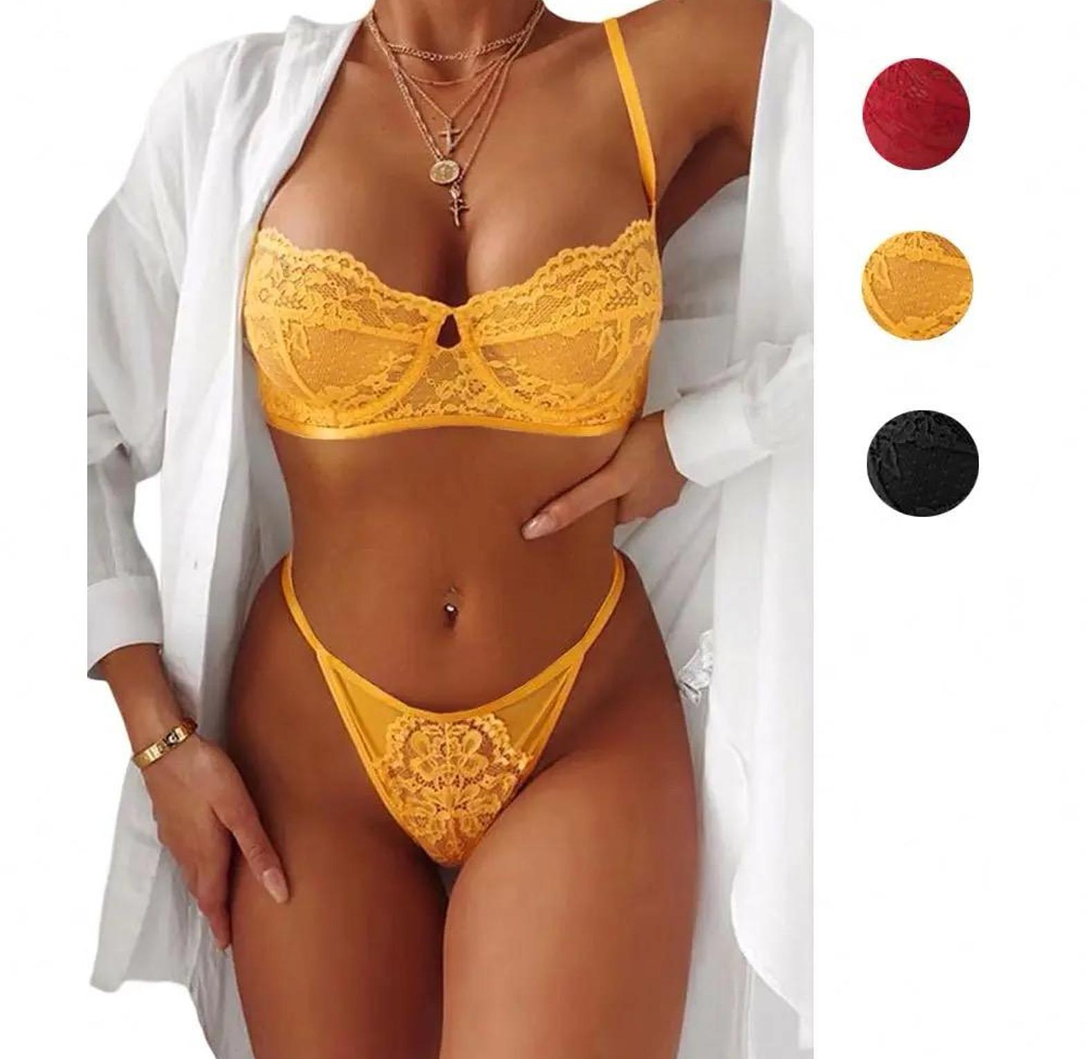 Slip into effortless elegance with this 2-Piece Lace Bra Set, featuring a transparent bralette and matching seamless briefs designed to accentuate your natural beauty. Crafted from breathable, lightweight lace, the set offers soft stretch for a comfortable fit that moves with your body. The bralette provides gentle support with a barely-there feel, while the mid-rise panties hug smoothly without visible lines perfect under any outfit or worn on its own for those intimate, confident moments. Whether you're dressing up for someone special or indulging in everyday luxury, this set delivers sheer sophistication with a whisper of seduction.