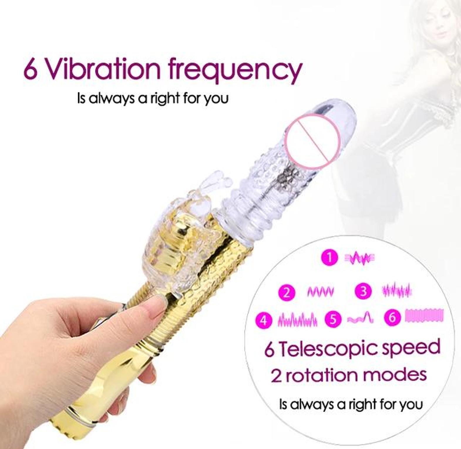A dual-action rabbit vibrator with 6 vibration modes, crafted to stimulate the G-spot and clitoris simultaneously for intense blended orgasms.