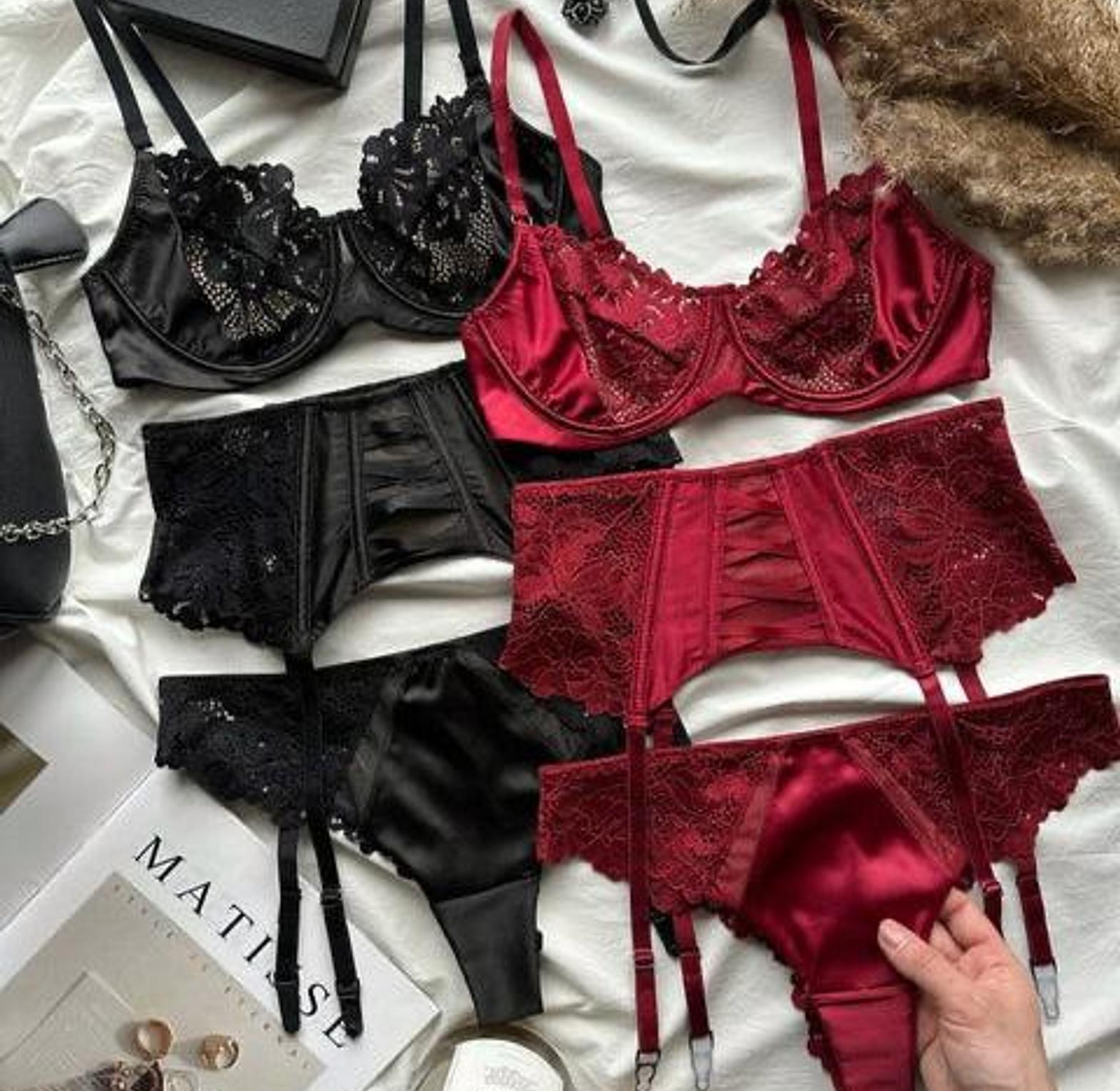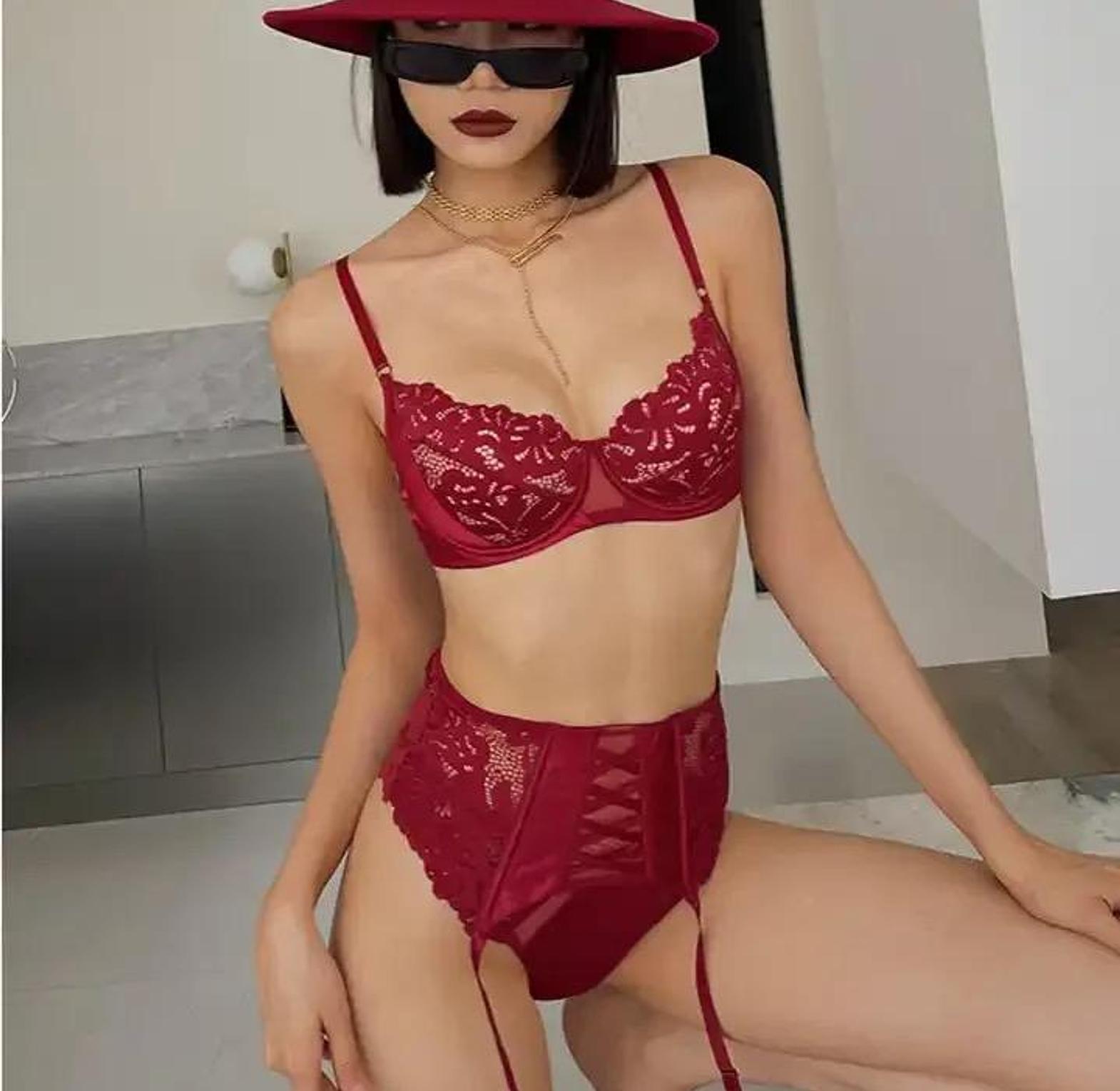 Indulge in the beauty of fine craftsmanship with this 3-Piece Sexy Embroidered Lingerie Set, featuring a matching bra, panties, and coordinating garter belt. Made with soft mesh and adorned with intricate floral embroidery, this set blends luxury with allure for an unforgettable intimate look. The bra offers light support with adjustable straps, while the mid-rise briefs provide a flattering fit with just the right touch of sheer tease. Finished with a coordinating garter belt to elevate the ensemble, this set is perfect for romantic evenings, special occasions, or when you simply want to feel irresistibly confident. A true blend of grace, detail, and sensual design