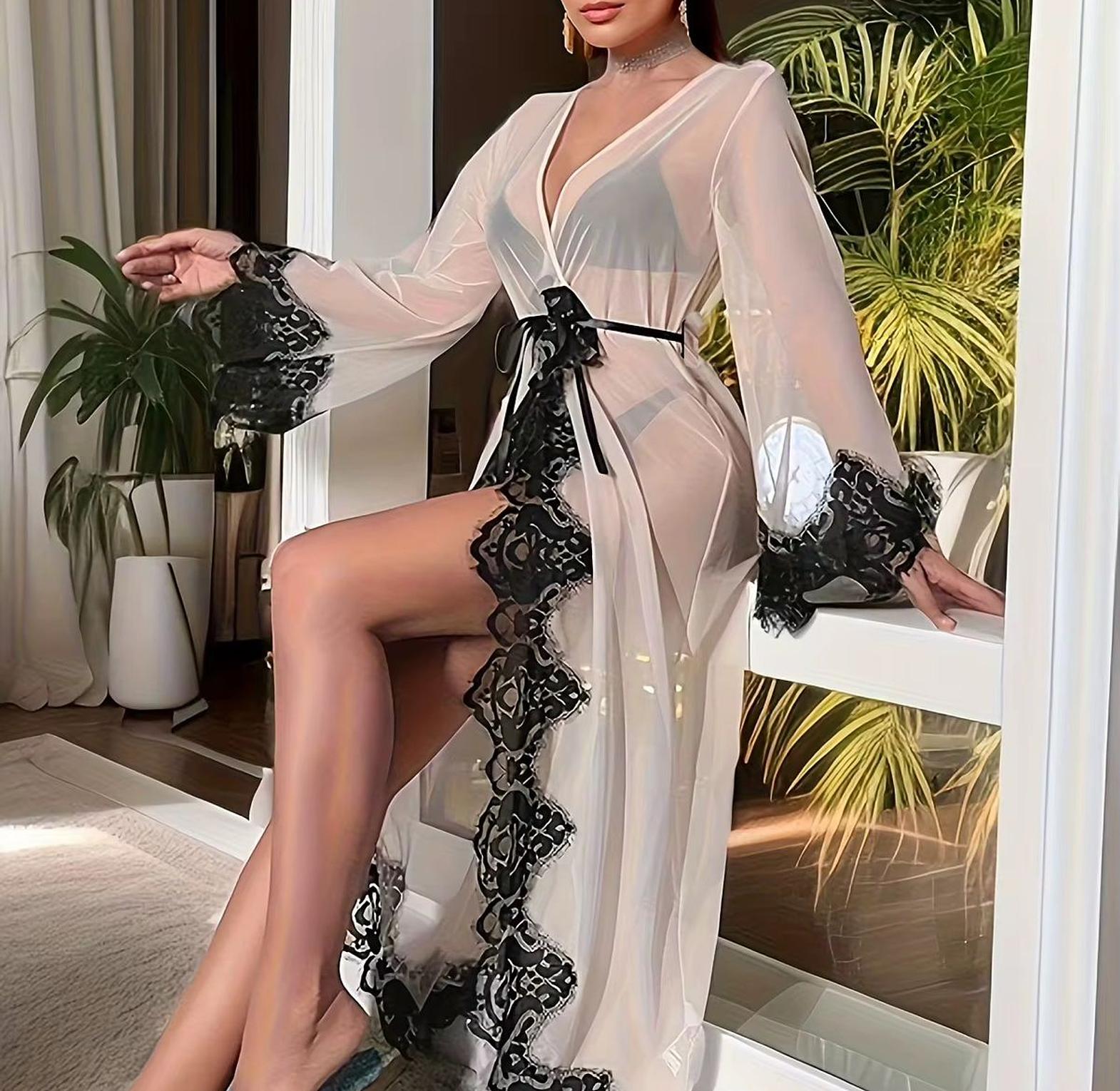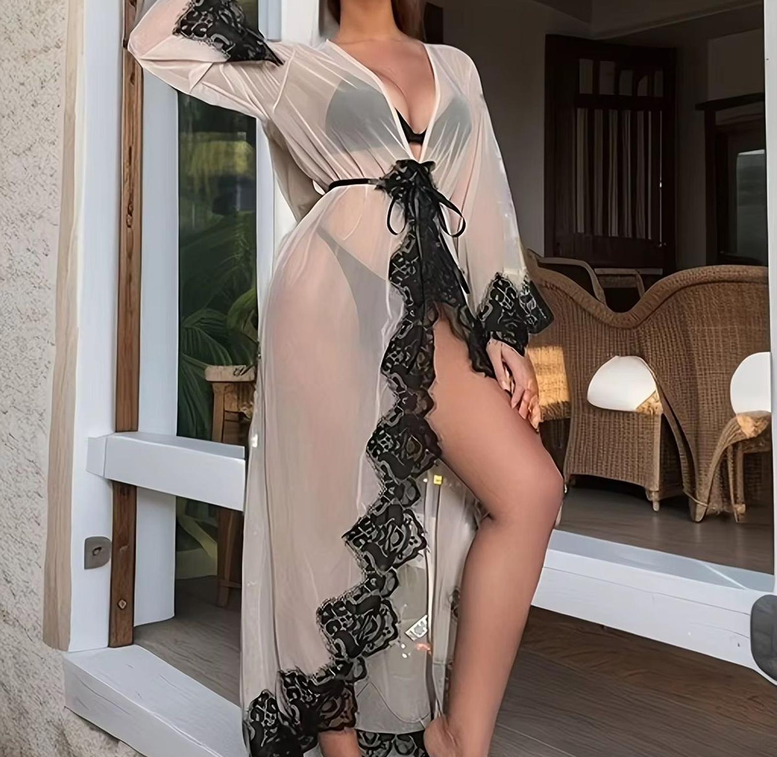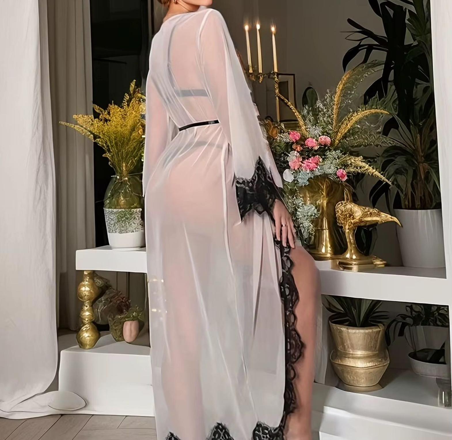 Turn up the allure with the New Sexy Passion Temptation Bathrobe, a breathtaking piece crafted from sheer lace mesh that drapes gracefully over the body, leaving just enough to the imagination. This long, flowing bathrobe blends sensuality with elegance, making it the perfect choice for romantic nights or simply embracing your femininity in luxurious style. The intricate lace pattern adds a touch of sophistication, while the transparent fabric reveals your silhouette with tastefully bold confidence. Lightweight and breathable, this robe is as comfortable as it is captivating, offering the perfect balance between softness and seduction. Whether it’s a special evening or a moment of self-love, this bathrobe is designed to make you feel powerful, beautiful, and undeniably irresistible.