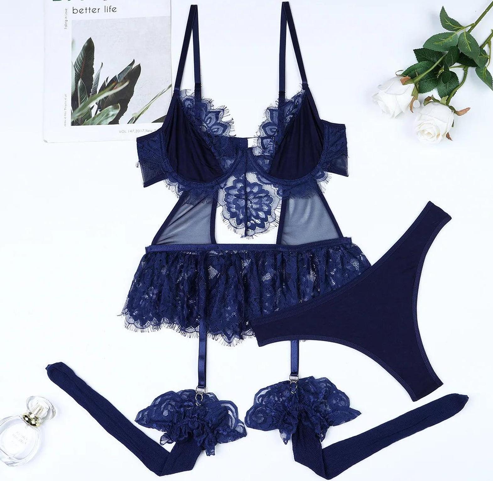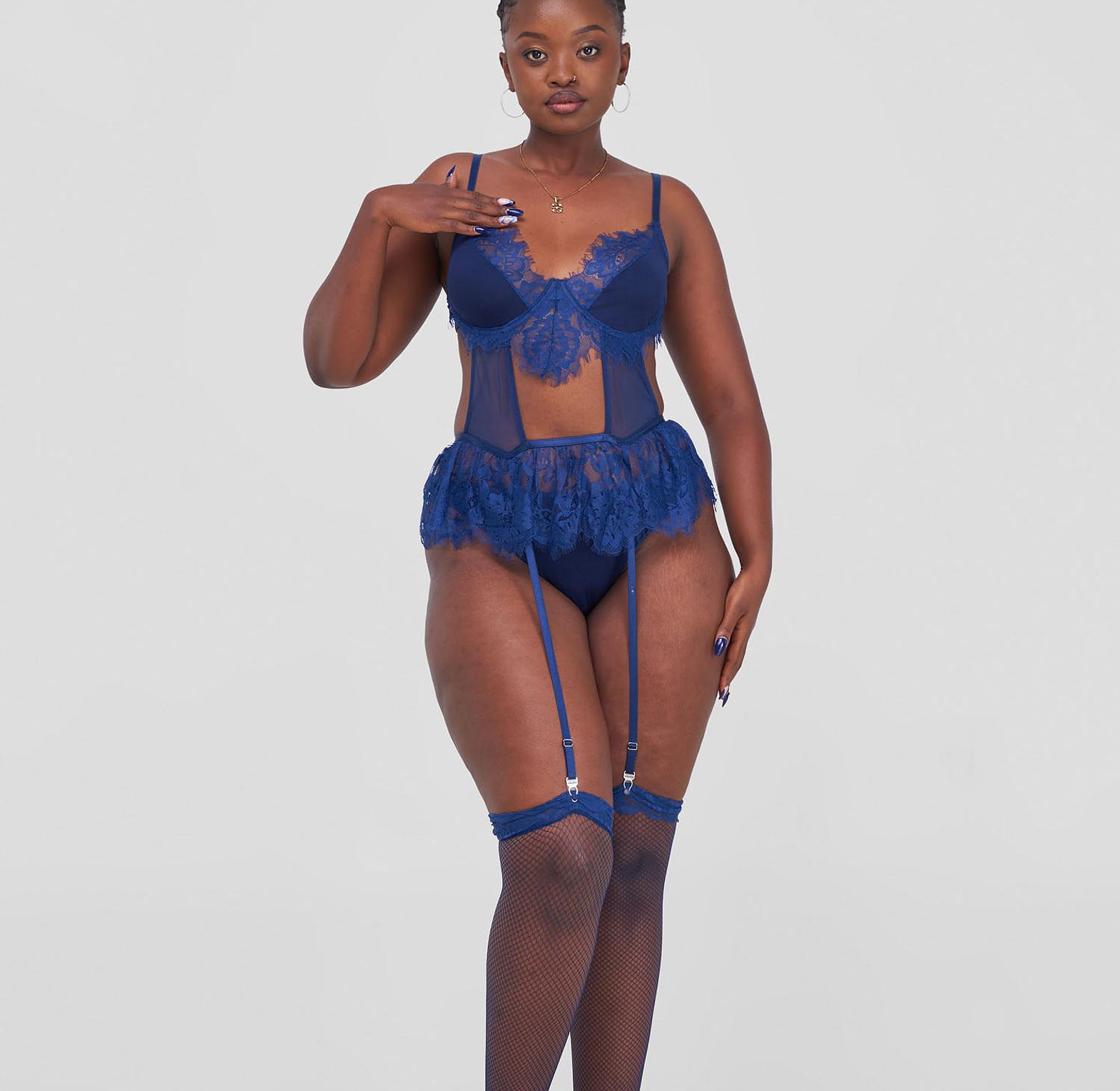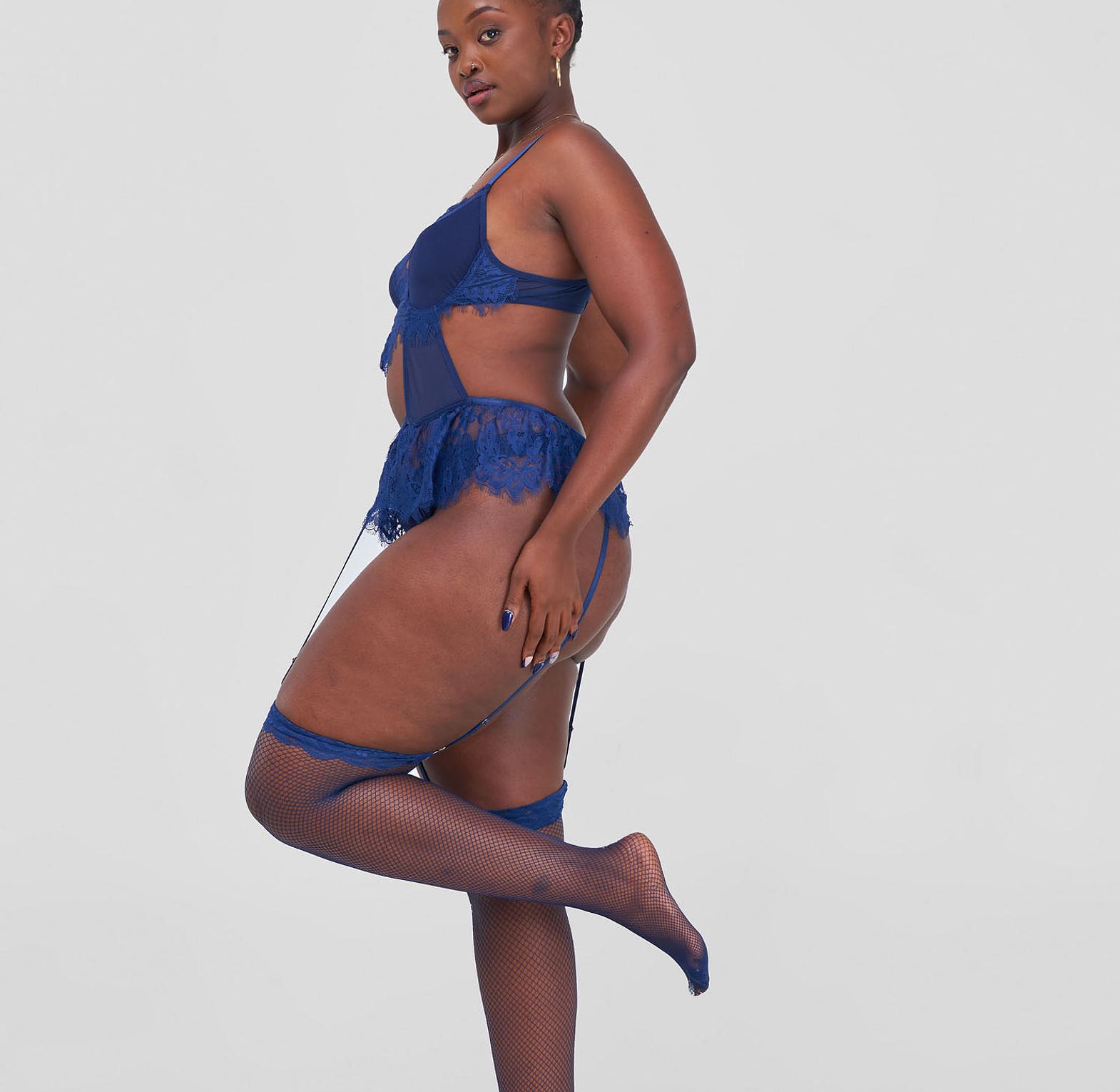 Turn heads and own the moment in this Posh Lingerie & More Lace Fishnet Stocking Set in a bold, sultry blue. Designed to highlight your curves with a perfect balance of delicacy and daring, this set features intricate floral lace paired with sheer fishnet patterns for a look that’s both feminine and fiercely confident. Stretchy, soft, and body-hugging, it offers a comfortable fit while accentuating your legs and thighs with just the right touch of temptation. Ideal for romantic evenings, boudoir photoshoots, or personal empowerment, this set brings timeless glamour and modern sensuality into perfect harmony. When elegance meets allure, this is what it looks like.