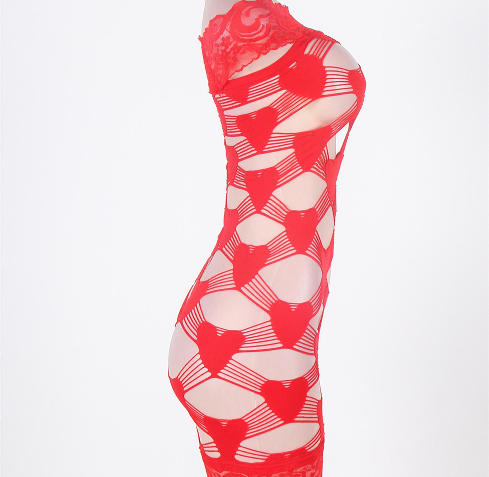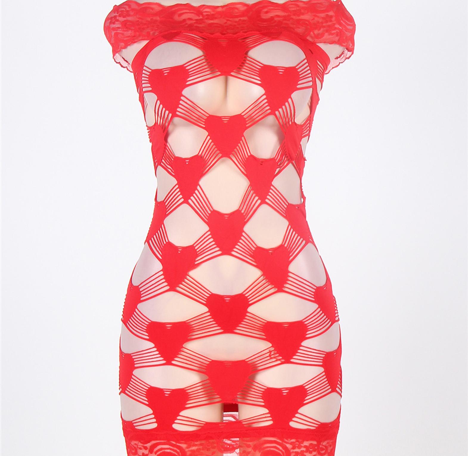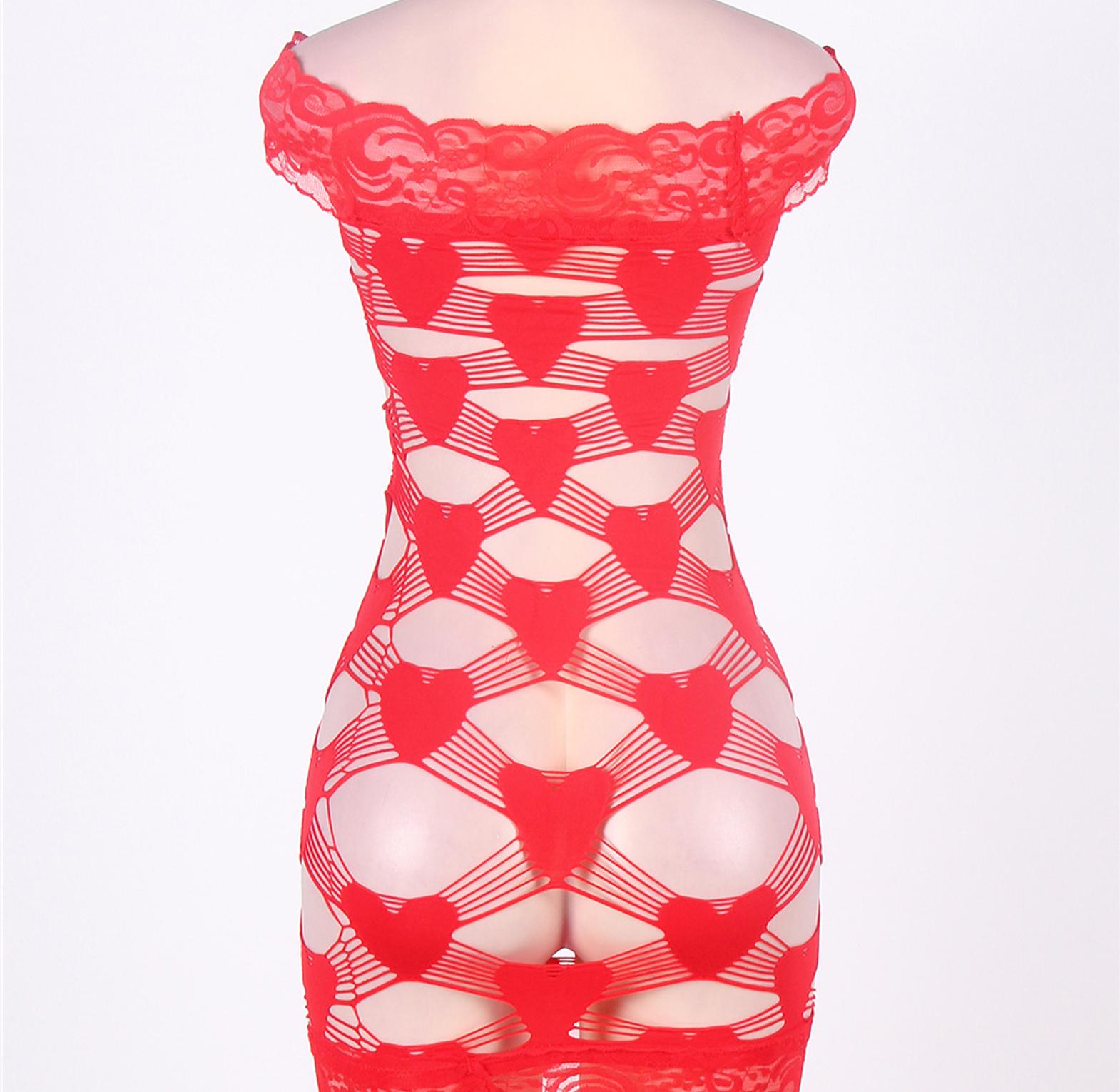 This red crocheted lace chemise set features a seamless, hollow-out design that flatters the body while exuding irresistible sensuality.