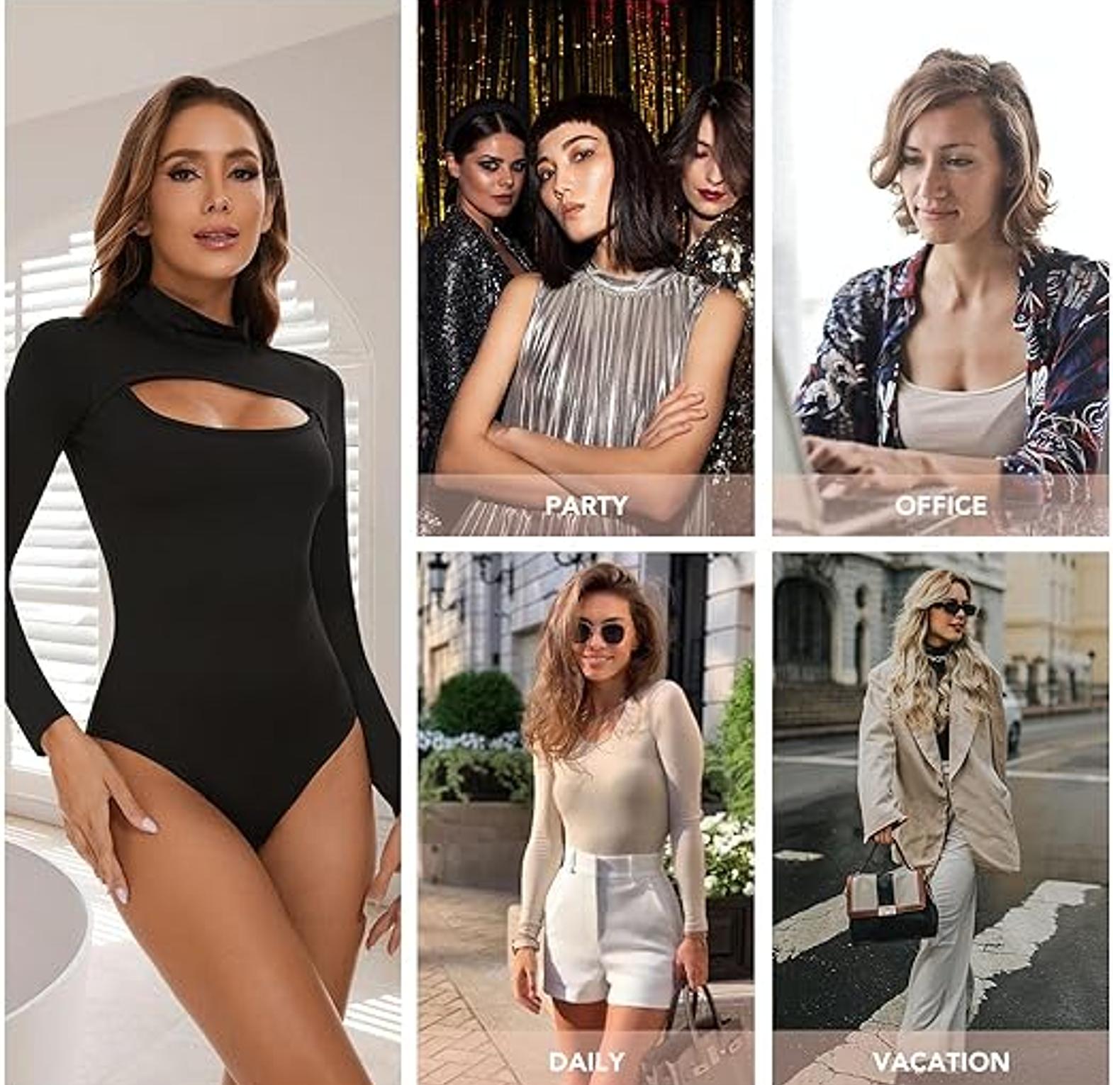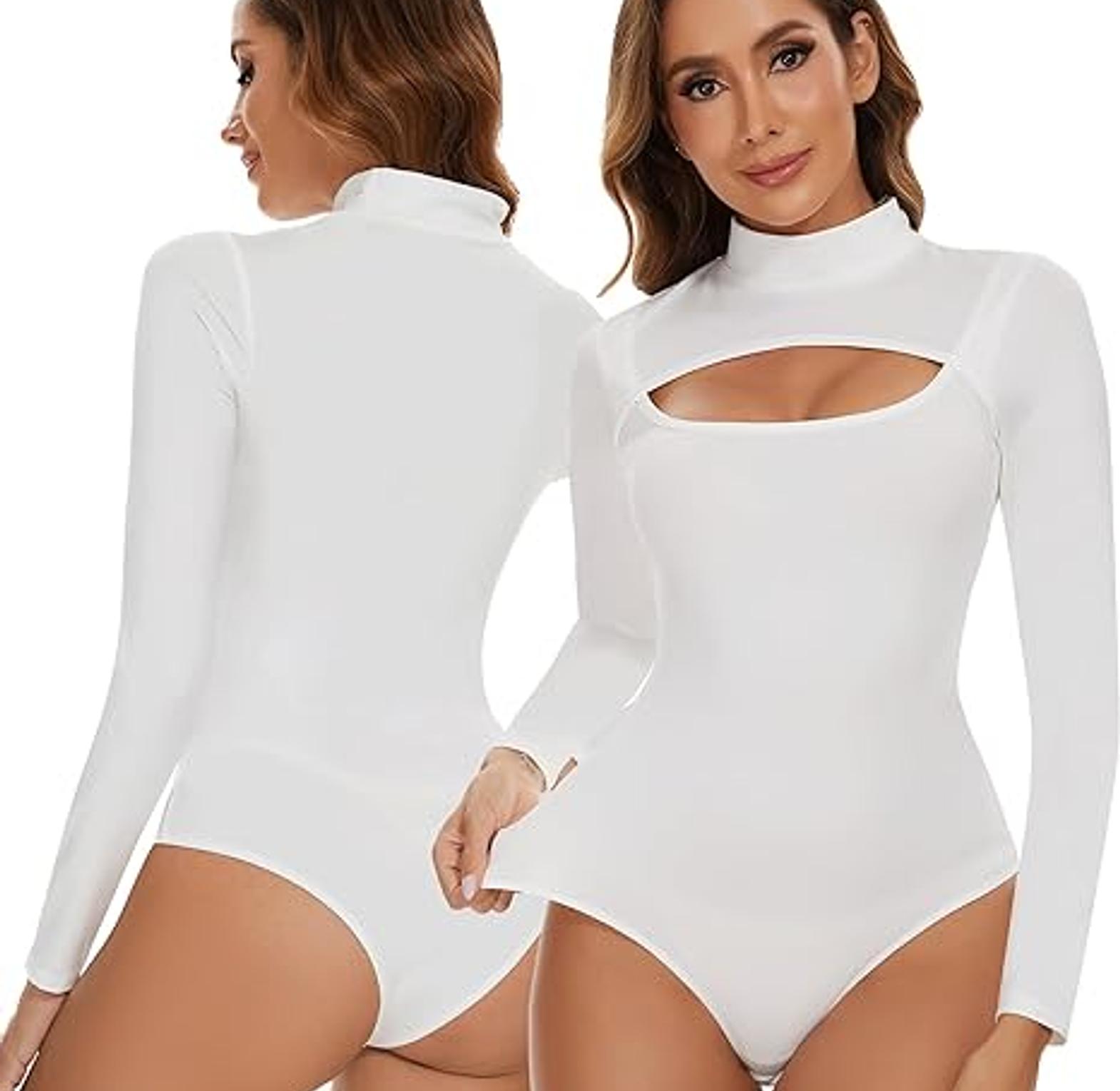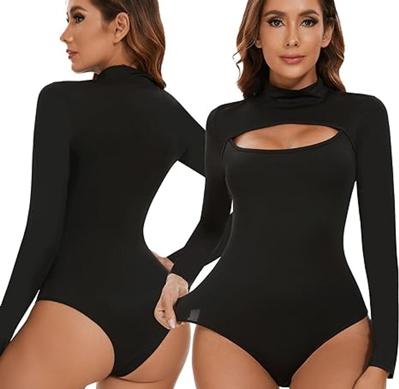 This high-quality, long sleeve bodysuit features a round neck and sexy front cutout design, made from soft, breathable, and stretchy fabric for a sleek, confident fit.