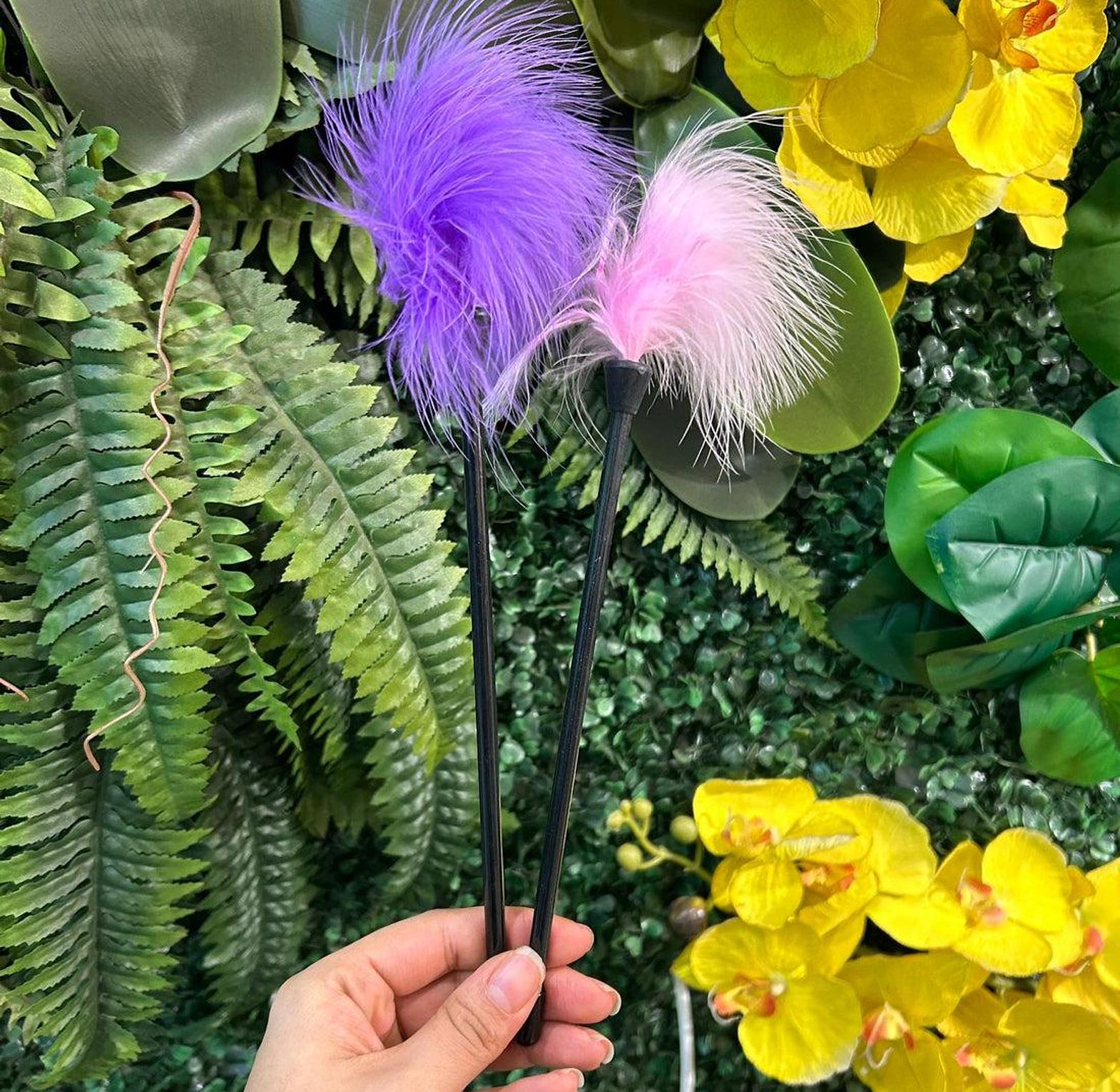A soft feather tickler designed to tease, tempt, and awaken the senses during playful, erotic foreplay.