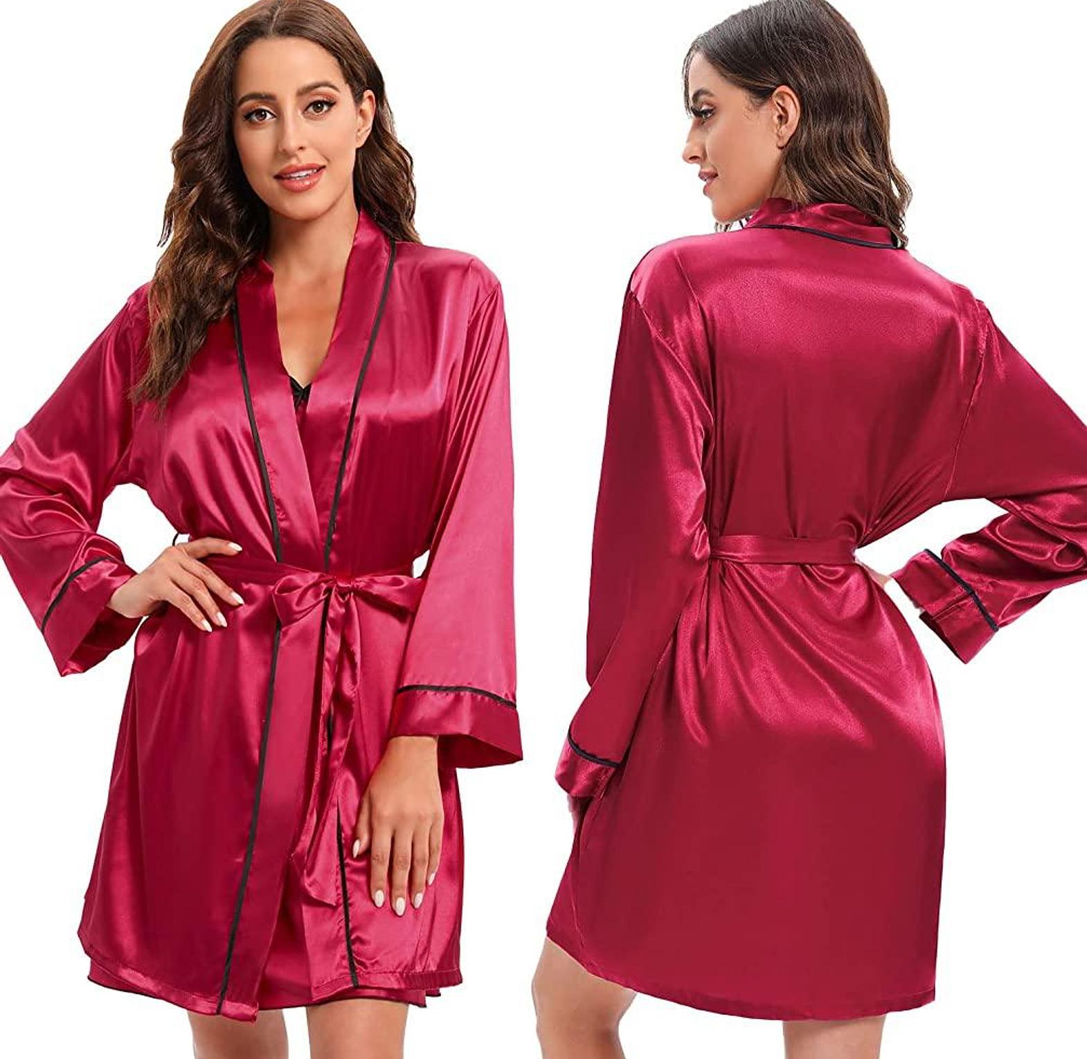 Wrap yourself in sophistication with this silk pajama robe and dress set, designed to make every evening feel like a private retreat. The silky slip dress glides effortlessly over your body, accentuating curves with a soft sheen and subtle drape, while the matching robe adds a touch of mystery with its flowing silhouette and gentle waist tie. Whether you're unwinding after a long day or setting the tone for a romantic night in, this set strikes the perfect balance between comfort and sensuality. Ideal for gifting or self-indulgence, itβs a timeless piece for women who appreciate both luxury and seduction in their nightwear.