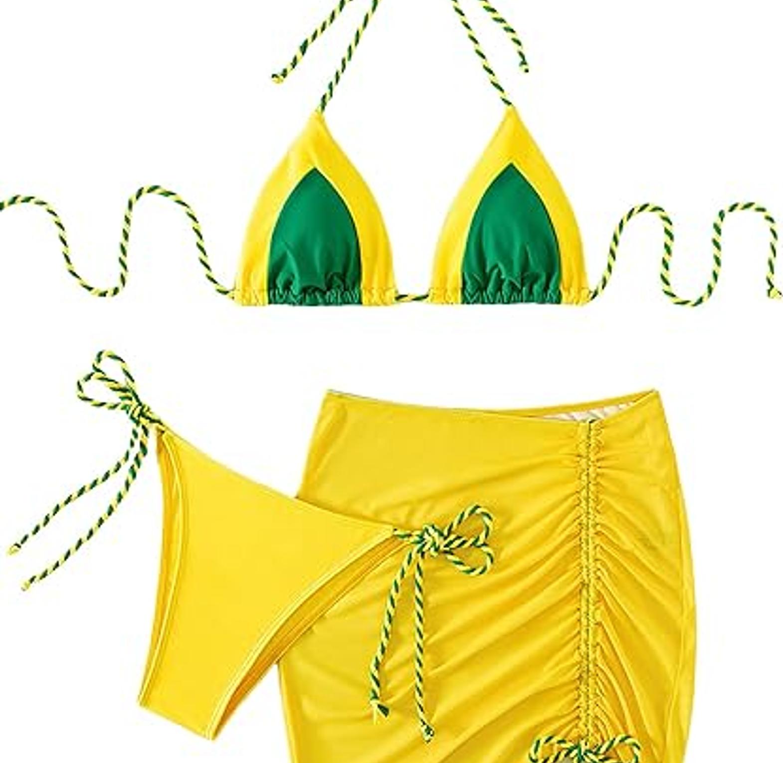 Designed for the modern beachgoer who loves a coordinated and flattering fit, this women’s 3-piece swimsuit set brings style, comfort, and attitude to every sun-soaked outing. The high-waisted thong bottoms offer tummy control while elongating the legs, and the matching colorblock bikini top provides adjustable support with a trendy, sculpted look. Completing the set is a lightweight drawstring cover-up skirt that ties effortlessly at the waist—perfect for transitioning from sand to street without sacrificing style. Made from quick-dry, stretchable fabric, this swimsuit moves with you while keeping its shape. Whether you're lounging poolside or strutting the shoreline, this set delivers bold, confident swim fashion with just the right touch of coverage.
