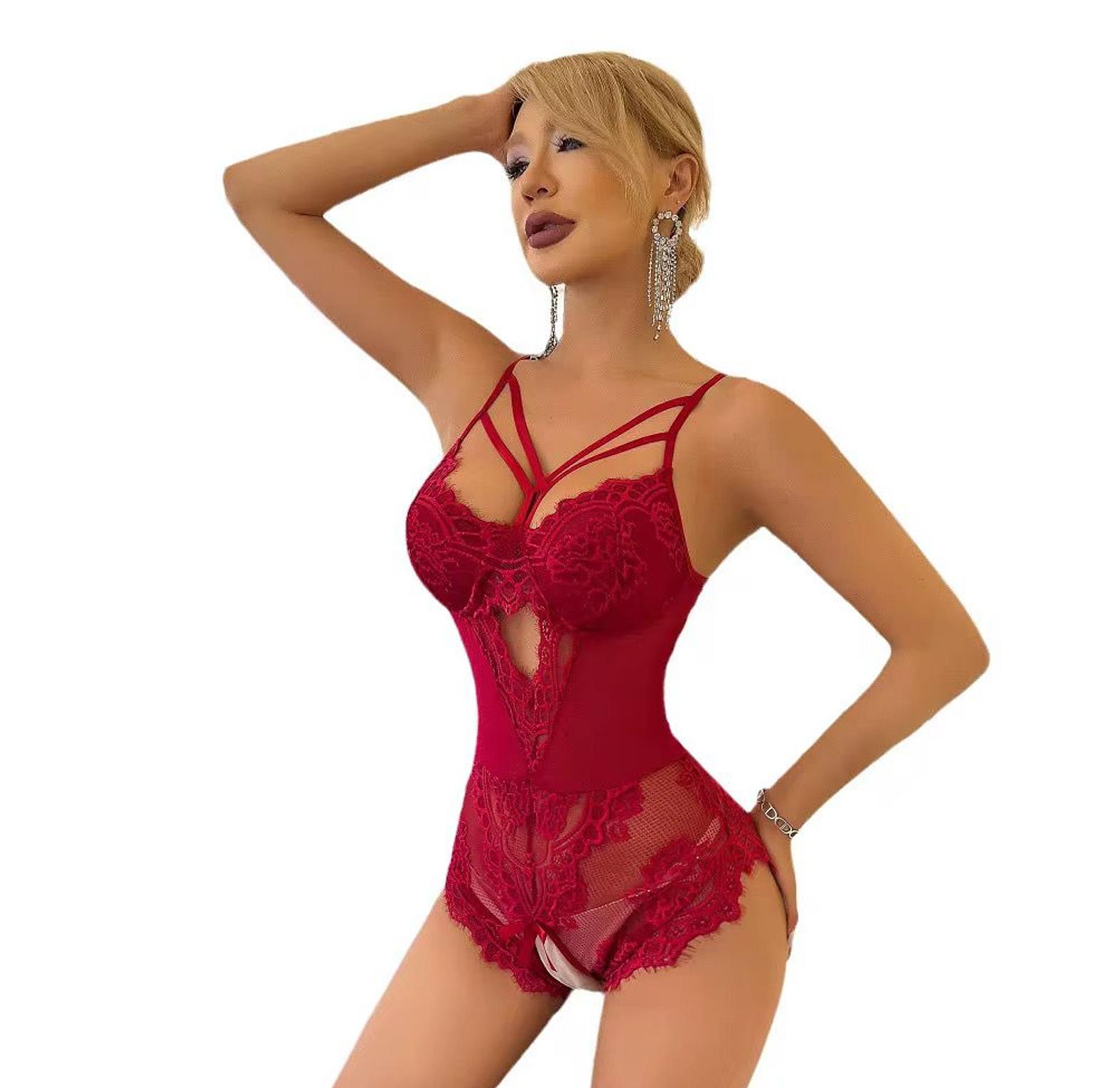 Designed to make a lasting impression, this women’s sexy lingerie bodysuit combines elegance with provocative charm. Made from sheer mesh and soft lace, it showcases the body with tasteful transparency while the strategic front or side slit adds a teasing edge. The bodysuit features delicate bow accents that enhance its playful femininity, balancing softness with sultry appeal. A figure-hugging cut flatters the natural silhouette, making it ideal for intimate occasions or simply feeling bold and beautiful in your own space. Whether you're dressing for a partner or empowering your own confidence, this seductive piece blends allure, comfort, and style in one unforgettable design.